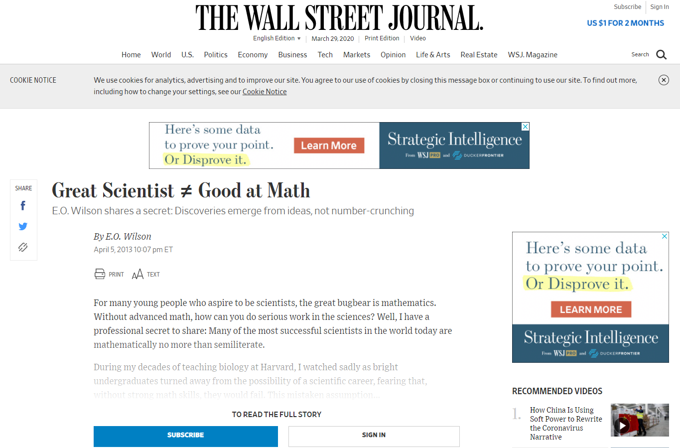하버드대학에서 생물학을 가르치는 수십 년 동안, 저는 뛰어난 학부생들이 과학적인 경력의 가능성을 외면하고, 뛰어난 수학 기술이 없다면 실패할까봐 두려워하는 것을 슬프게 지켜 보았습니다. 이 잘못된 가정은 헤아릴 수 없을 만큼 필요한 재능과 인재를 빼앗고 있습니다.