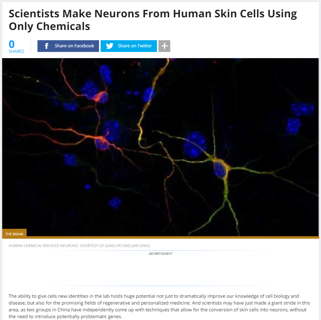 중국의 두 그룹에서 human skin cell을 이용해서 활동하는 Neuron을 만들었네요.