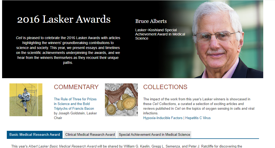 관련 링크는, Cell에서 특별판으로 Lasker award 관련 시리즈물을 엮은 것입니다.